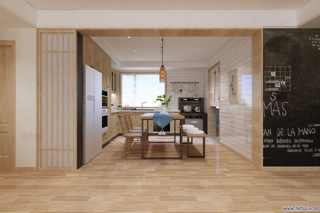 餐厅与厨房,在传统装修中是两个相互分割的独立空间,把它们做成一体式的设计后,生活会有很微妙的变化,进而使得一家人的关系更加亲近温馨,使得居家幸福度大大提升。