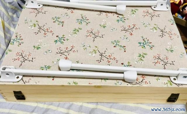 内部用红酒盒子拆下来的木板做个分隔架,翻盖内部用旧布料和松紧绳做个工具收纳架,一个美术工具箱就有了。